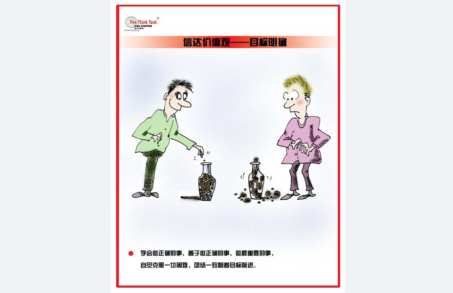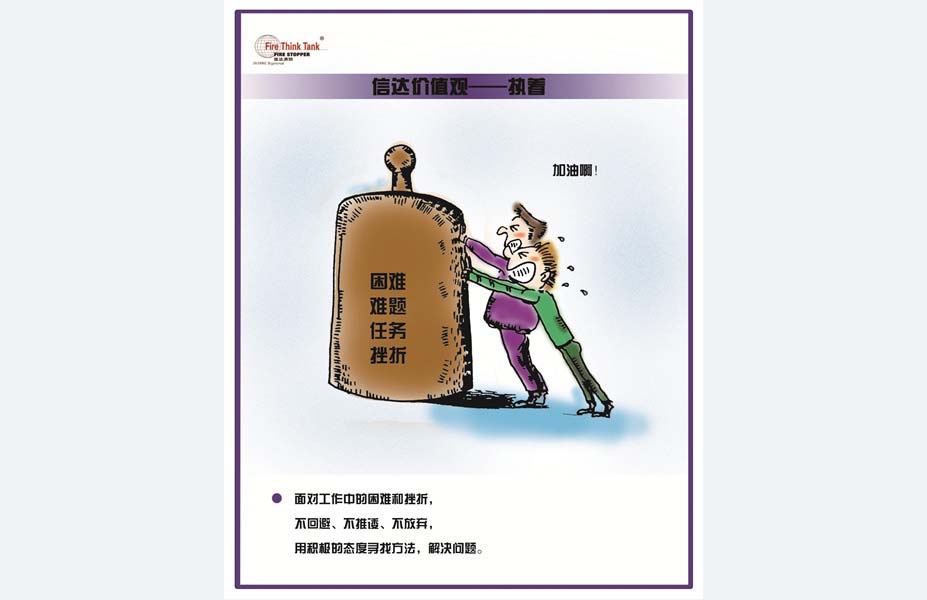 企業(yè)價值觀是企業(yè)精神的靈魂,是企業(yè)中所有員工共同擁有的價值取向,我們開展此活動的目的也在于讓所有員工理解信達消防價值觀,認同信達消防的企業(yè)文化,也希望每位員工在今后的工作中,以信達價值觀為指導組織開展各項工作;以目標明確、執(zhí)著、寬容、奉獻、創(chuàng)新、專業(yè)為企業(yè)價值取向;以洞徹人生的智慧去追尋至善的極點,共同創(chuàng)造信達美好的未來.