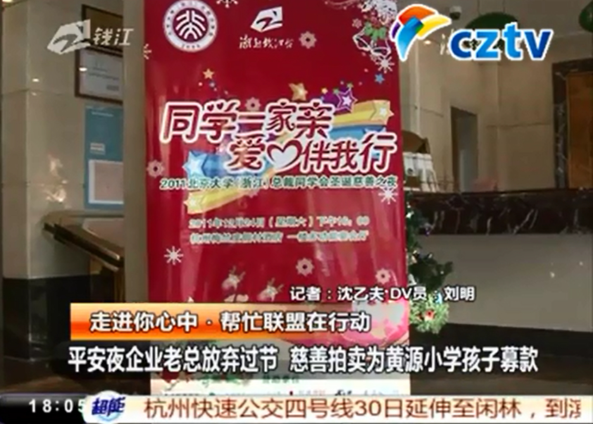 2011年12月24日晚,由北京大學(xué)(浙江)總裁同學(xué)會(huì)主辦的“同學(xué)一家親,愛心伴我行——2011北京大學(xué)(浙江)總裁同學(xué)會(huì)圣誕慈善之夜”晚會(huì)在西子湖畔的梅竺度假村舉行。浙江省商貿(mào)業(yè)聯(lián)合會(huì)會(huì)長吳德隆、浙江省經(jīng)信委中小企業(yè)發(fā)展規(guī)劃指導(dǎo)處處長應(yīng)云進(jìn)、浙江省市場(chǎng)協(xié)會(huì)秘書長呂振華、著名危機(jī)管理學(xué)家艾學(xué)蛟博士等嘉賓出席晚會(huì)。