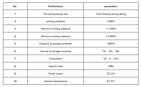 IG-541 fire extinguishing system, whichuses mixed gas as suppressants composed of nitrogen gas at 48.8%~53.2%, argon gas at37.2%~42.9% and carbondioxide at 7.6%~8.4%, increase IG-541 concentration to thelevel provided by national design specifications for different kinds offlammables in protective areas within prescribed time, so as to achieve thepurpose of fire extinguishing.
