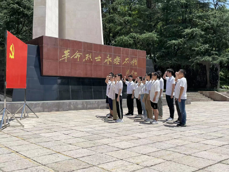 踏入紀(jì)念館的那一刻,寫(xiě)有裘古懷烈士遺言:“同志們,勝利的時(shí)候,請(qǐng)你們不要忘記我們!”的石碑赫然映入眼簾,回想起革命烈士慷慨赴死的英勇事跡,令人動(dòng)容。緊接著黨員們來(lái)到寫(xiě)有“革命烈士,永垂不朽”字樣的紀(jì)念碑前,在支部書(shū)記馬文婷的的領(lǐng)誓下,全體黨員握緊拳頭,面對(duì)鮮紅的黨旗,重溫入黨誓詞,用鏗鏘有力的誓言,表達(dá)對(duì)黨的承諾和對(duì)黨忠誠(chéng)的決心。